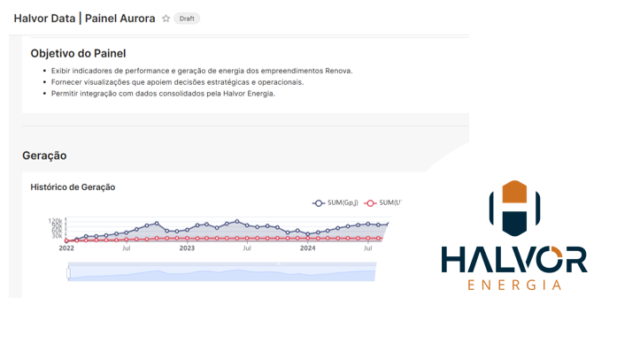 Dashboard dinâmico que reúne análises em tempo real de geração e comercialização de energia, integrando informações operacionais, comerciais e regulatórias em um único ambiente